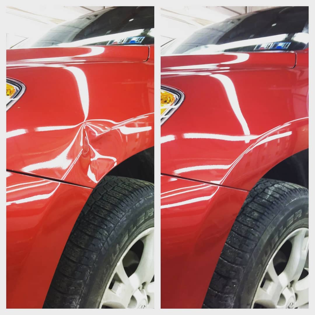 Ремонт вмятин без покраски занимает минимум времени и применяется, если не повреждено лакокрасочное покрытие.